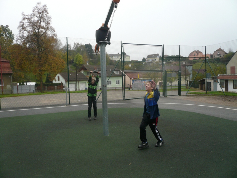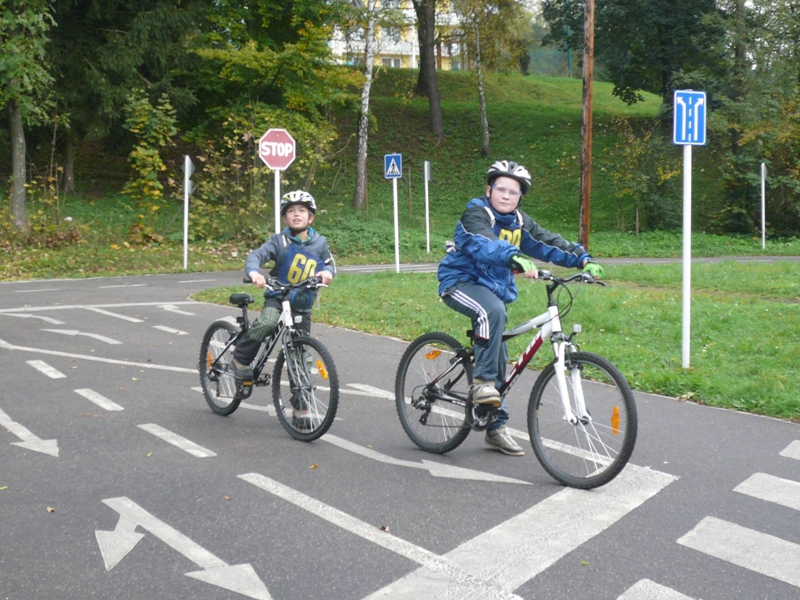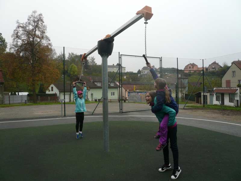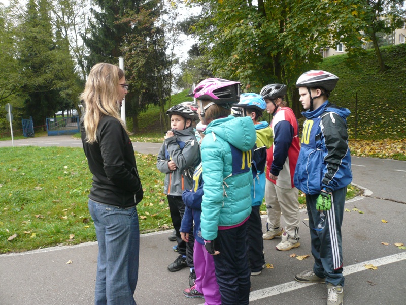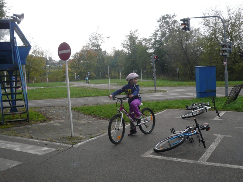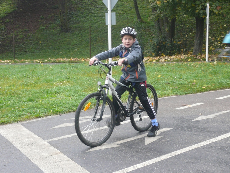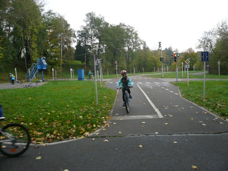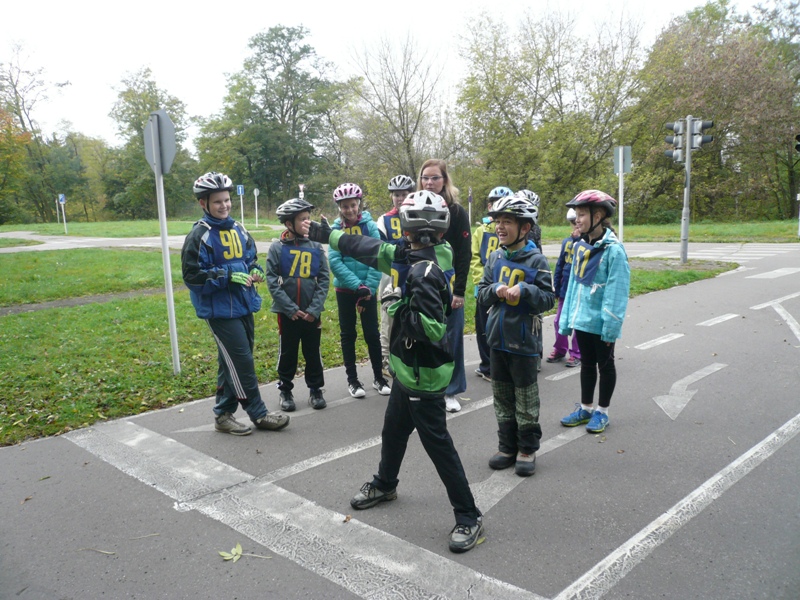 V letošním školním roce jsme dostali možnost vyjet na výuku Dopravního hřiště i s letošními páťáky. Děti, které v loňském roce nezískaly průkaz cyklisty nebo se nezúčastnily ze zdravotních důvodů, si mohou výuku zopakovat. Nakonec nás vyrazilo celkem 10 - šest čtvrťáků a čtyři páťáci. Počasí nám trošku hrozilo, ale nakonec to dobře dopadlo a spadlo jen pár kapek. Teplota byla spíš příznivá, takže dětem nemuselo být při náročné cyklistice ani příliš horko. Nejdříve paní Kubínová děti provedla celým hřištěm a přimo "za pochodu" si děti zopakovaly základní značky, pohyb na pozemní komunikaci, přejíždění z pruhů, techniku jízdy na kruhovém objezdu a důležité informace o významu značek v praxi. (Jednosměrný provoz, zastavení na Stůj, dej přednost v jízdě...) Pak už jsme si vzali kola, nastavili správně sedátka, utáhli přilby... a hurá do terénu. Děti dostaly výjimečnou možnost v délce jízdy - skoro dvě hodiny, jen s přestávkami na jídlo nebo odskočení. Musím říct, že jsme si to náramně užili a paní Kubínová děti moc pochválila, hlavně za výdrž, se kterou jezdily, ale ovšem i za snahu. Určitě se děti posunuly v chápání dopravních souvislostí i znalostí jízdy podle dopravních předpisů. Na jaře se těšíme na Cyklo den v Bukovině a také na další výuku na dopravním hřišti, která už bude spojená i s ověřením teoretických znalostí a vydáváním průkazů cyklisty. Zpáteční cesta byla okořeněná krátkou návštěvou zábavného technického hřiště, kde si děti zahrály tak trochu na artisty.