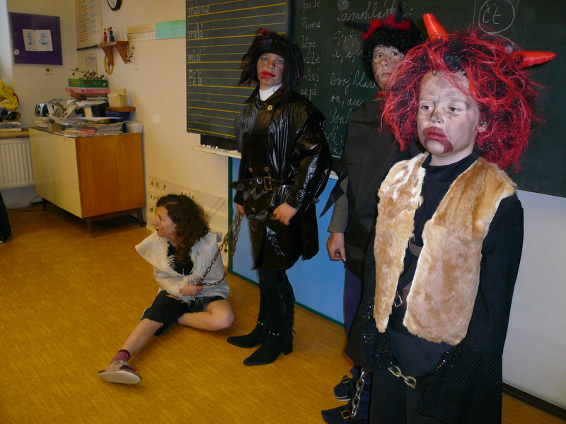 Mikuláš ve škole byl letos již tradiční akcí, kterou děti 4. a 5. ročníku přichystaly mladším kamarádům. Letos ovšem mikulášská návštěva proběhla ve znamení čertů a jejich nemilosrdného řádění. Několik "zlobílků" se ocitlo v pytli a čerti nahnali aspoň na chvíli opravdovou hrůzu. Brrr, a to byla jen příprava na večer. Básničky řekly děti čertům pěkně a nakonec dostaly i malou sladkou odměnu.