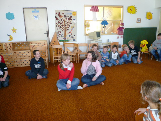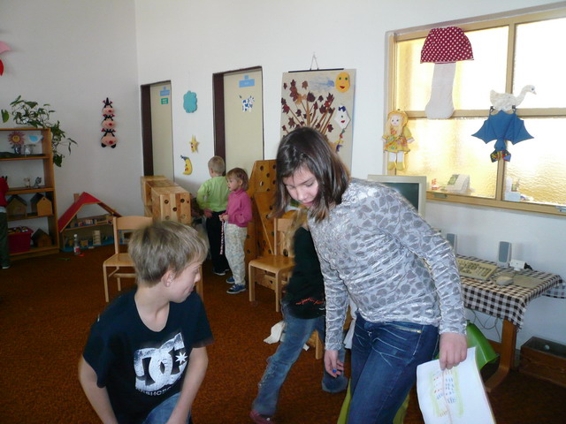Tak tomuhle se říká návštěva! Školáci předvedli malým kamarádům jak jsou šikovní - ukázky zábavného učení v 1. ročníku, maňáskové divadlo i dramatizované písničky. Také rozdali vyrobené dárečky a s dětmi ze školky si pořádně vyhráli. Děkujeme školkáčkům za namalované obrázky a těšíme se na kamarády u zápisu. Jen se omlouváme za trochu horší kvalitu fotografií.