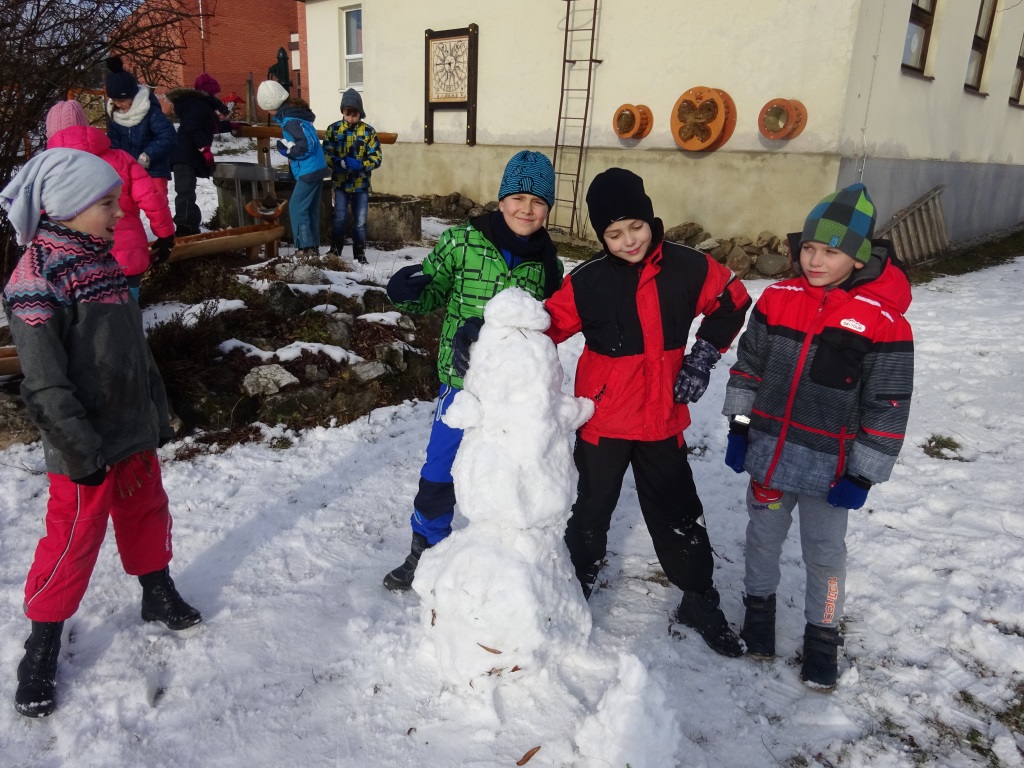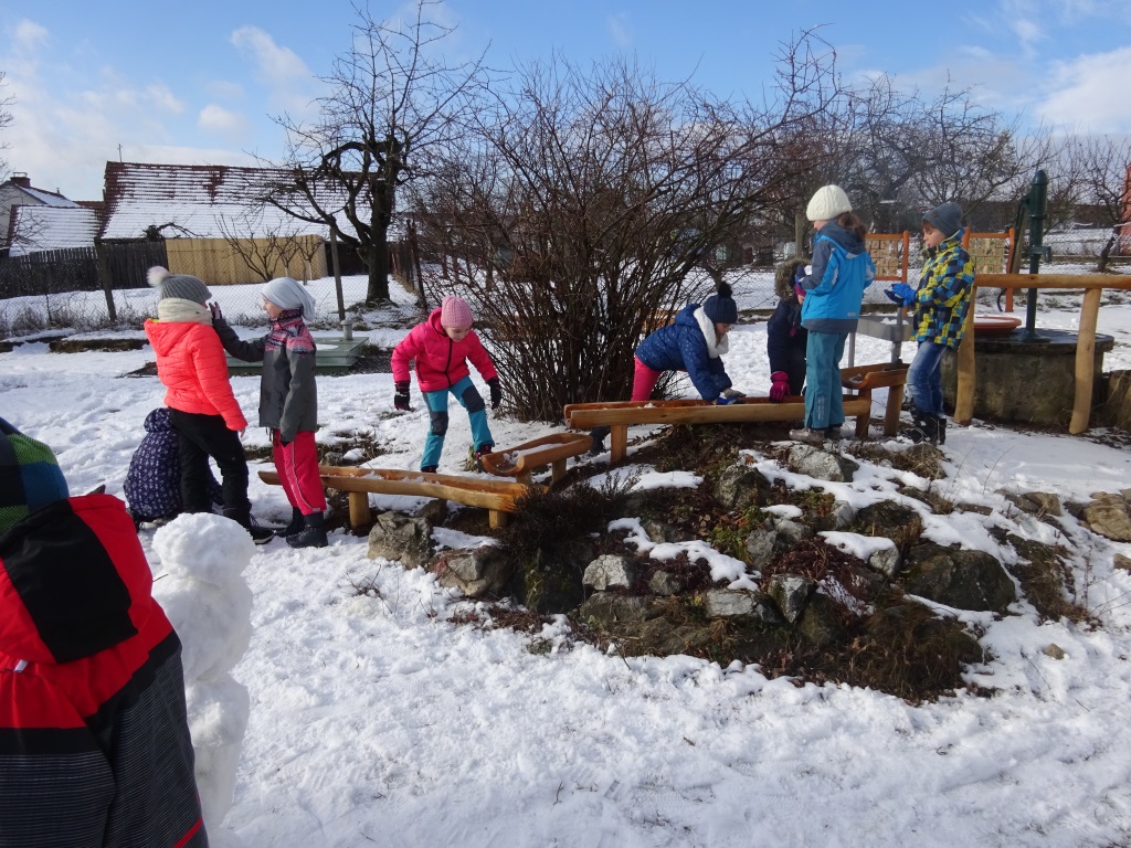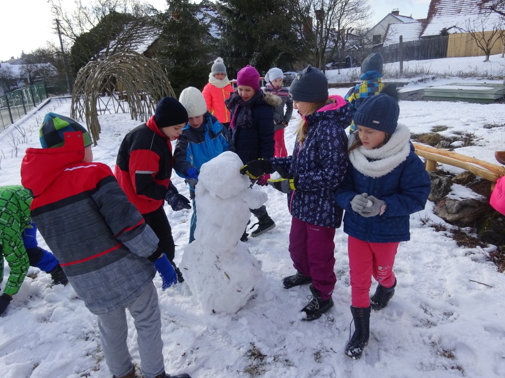 Sportujeme rádi a hodně - ve třídě, na hřišti i v lese. Zima v družině na zahradě. Vycházka do lesa - krmení zvěře 11. 2. 2020. Páteční družina 14. 2. 2020 + páteční INF - malování v 3D.