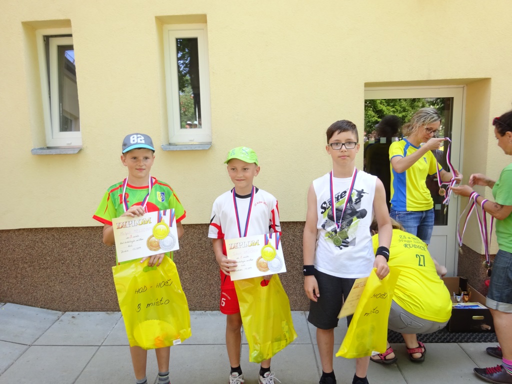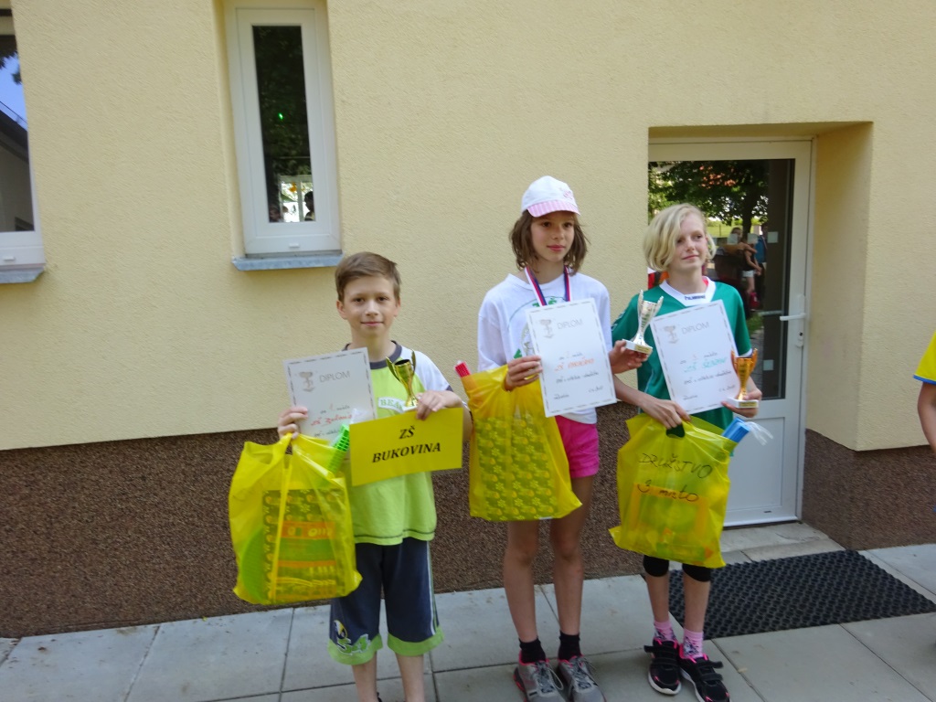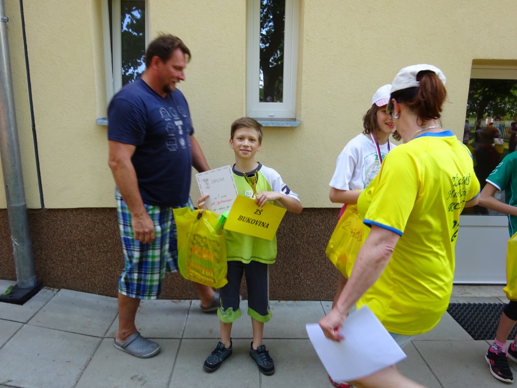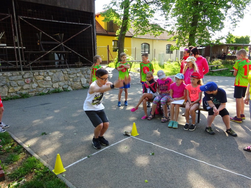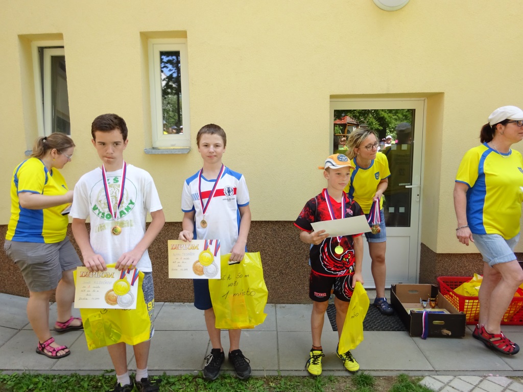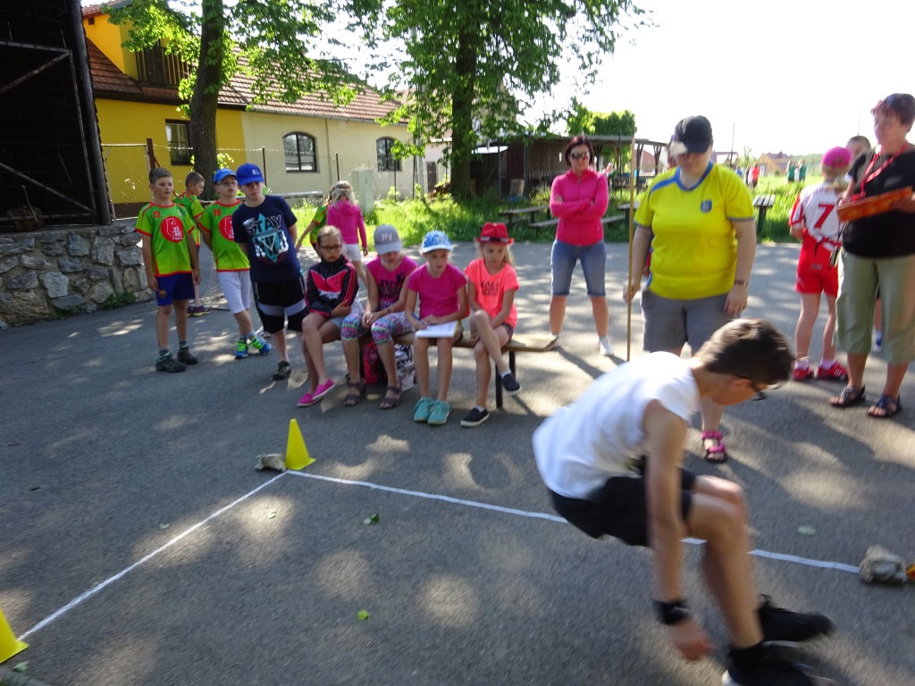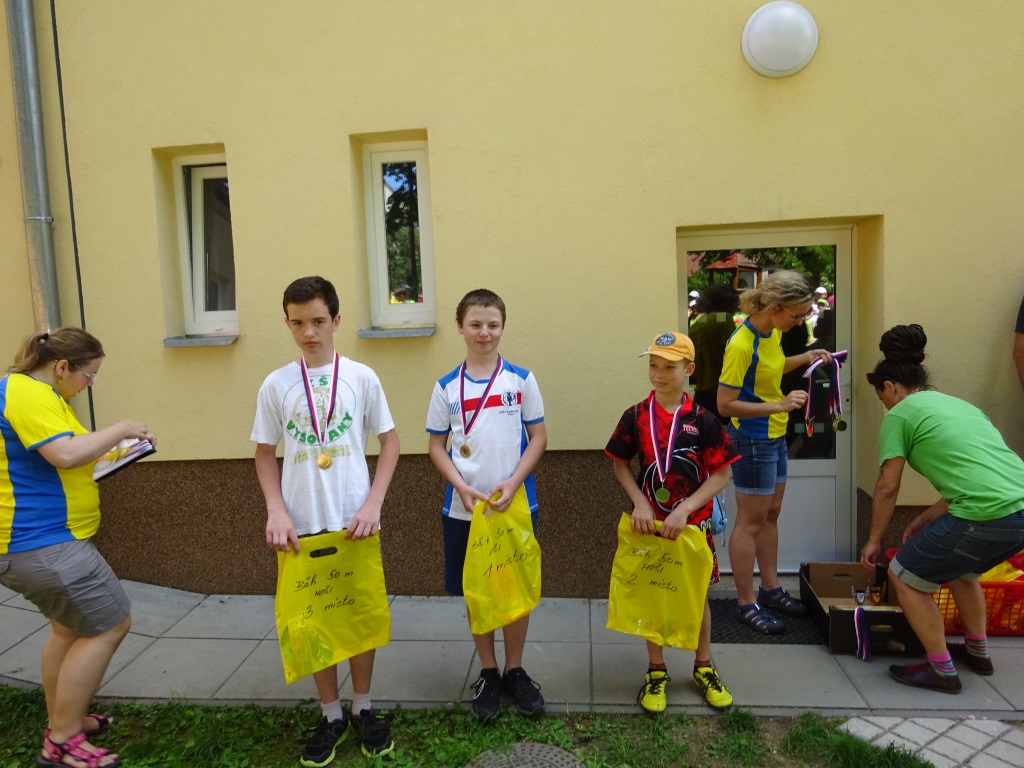 Foto R. Ilkaničová 2. 6. 2017 Celkové výsledky závodů: Vysledky OMŠ 2017 (1).doc Atletické závody Rudice 2017 Ve čtvrtek 1. 6. 2017 jsme se ve složení Bára Turčínková, Lukáš Bayer, Vojtěch Tesař, Jakub Hloušek, Dominik Malík, Alexander Kupčík a p. učitelka Ilkaničová vypravili do Rudice na atletické závody. Soutěžilo se v družstvech 1. - 5. ročník ZŠ v trojboji a to ve skoku z místa, běhu na 50metrů a hodu kriketovým míčkem. Dále se vyhodnocovali nejlepší sportovci jednotlivých disciplín a na závěr se běžel dálkový běh. V jednotlivcích se na 2. místě v hodu kriketovým míčkem skvělým hodem 37m umístil Alex Kupčík. Na skvělém 1. místě se umístil Vojtěch Tesař ve skoku z místa 219cm a v běhu na 50m získal také 1. místo. Vojta také získal titul nejlepšího sportovce turnaje v součtu bodů trojboje, získal celkem 70bodů. V dálkovém běhu se umístili na 4. místě Lukáš Bayer, na 7. místě Vojtěch Tesař a Jakub Hloušek doběhl se ctí v druhé polovině startujících. Bára Turčínková doběhla s dívkami na 7. místě. Ostatní se běhu nezúčastnili. Celkově se naše družstvo umístilo na 1. místě !!! Jméno běh 50m body skok body hod body trojboj Bayer 8:69 17 177 18 34,5m 20 55 Kupčík 8:00 21 201 23 37m 23 67 Malík 8:51 18 194 21 34,3m 20 59 Tesař 7:86 21 219 33 29m 16 70 Hloušek 8:74 17 167 15 34m 20 52 Turčínková 8:94 18 171 18 17,5m 15 51 celkem 354bodů Výsledky družstev: 1. místo ZŠ Bukovina 354bodů 2. místo ZŠ Vysočany 335bodů 3. místo ZŠ Šebrov 329bodů 4. místo ZŠ Rudice 320bodů 5. místo ZŠ Březina 319bodů 6. - 7. místo ZŠ Ráječko 317bodů 6. - 7. místo ZŠ Olomučany 317bodů 8. místo Doubravice 307bodů Zpět z Rudice jsme šli pěšky do Jedovnic a tam jsme navštívili cukrárnu, kde jsme řádně oslavili naše závodění pohárem se zmrzlinou, podívali jsme se k rybníku a na průlezky a pak se odpočatí, plni zážitků vrátili domů. Ještě nás čeká velká oslava s ostatními dětmi ve škole Dětem velice gratuluji ke skvělým výkonům a doufám, že se sportu budou věnovat i nadále i po odchodu z naší školy!! R. Ilkaničová