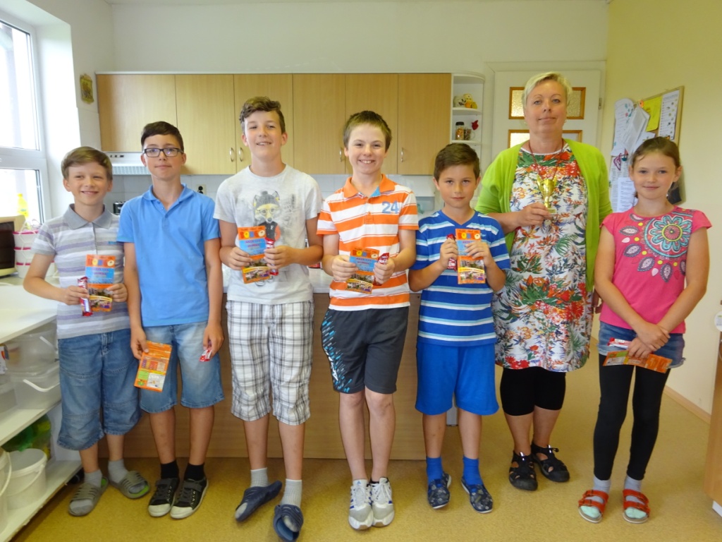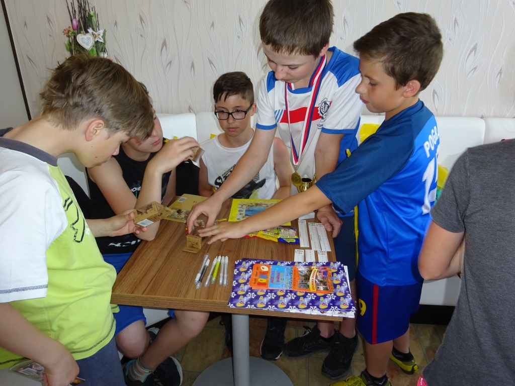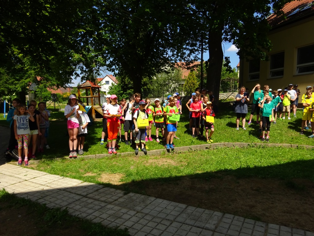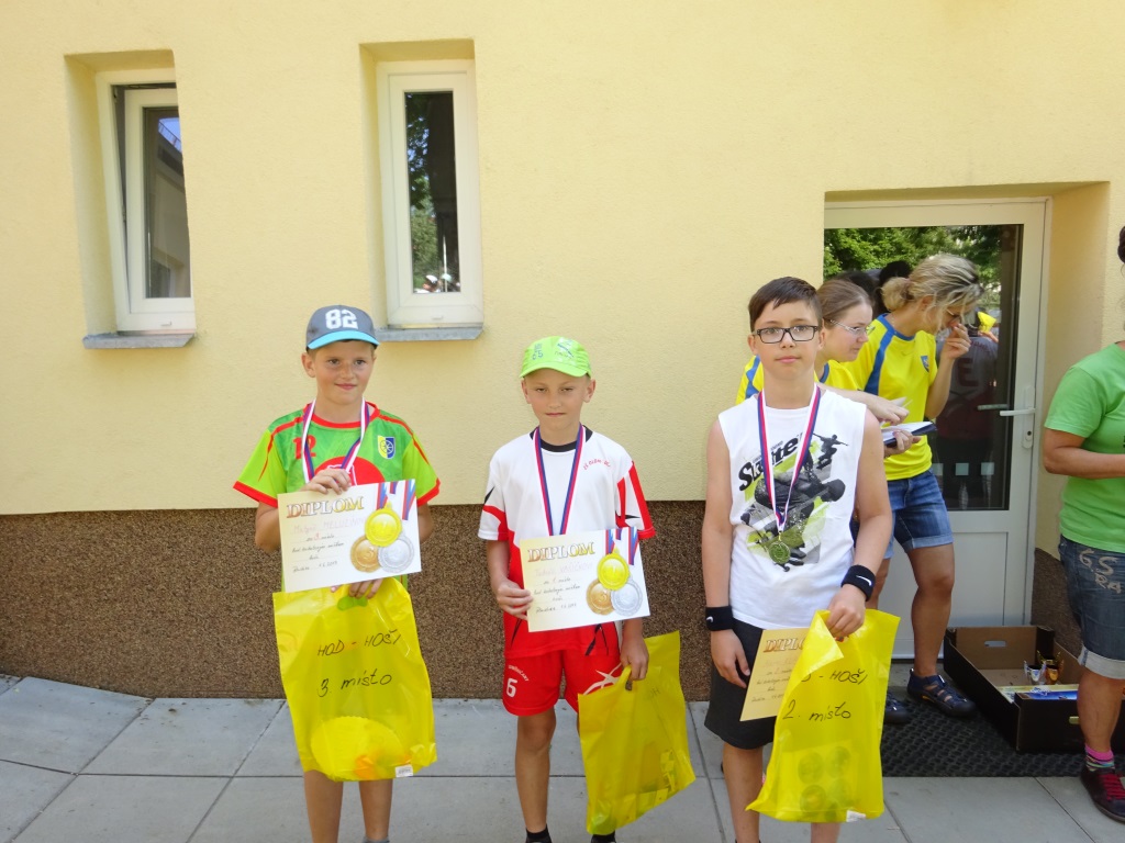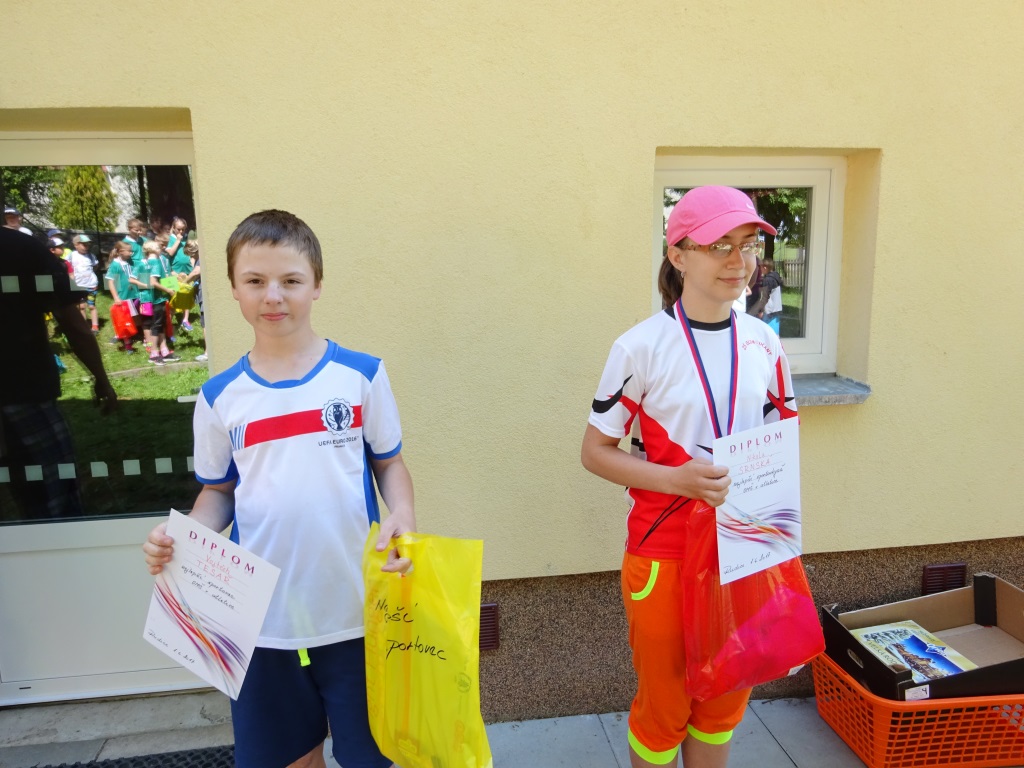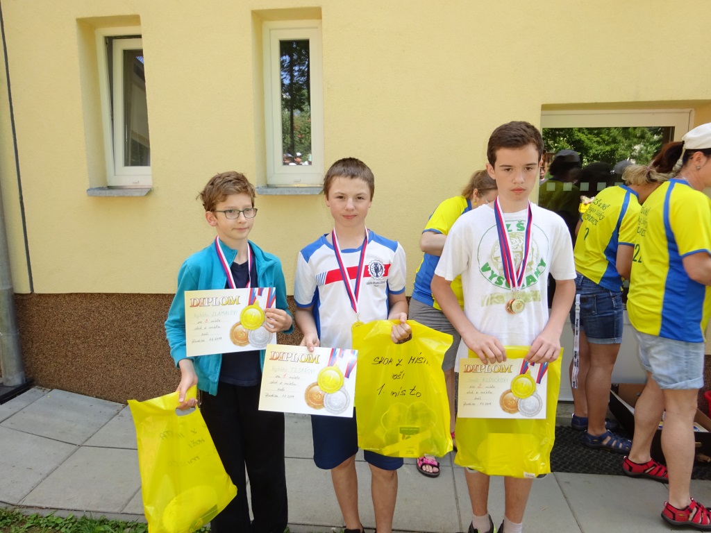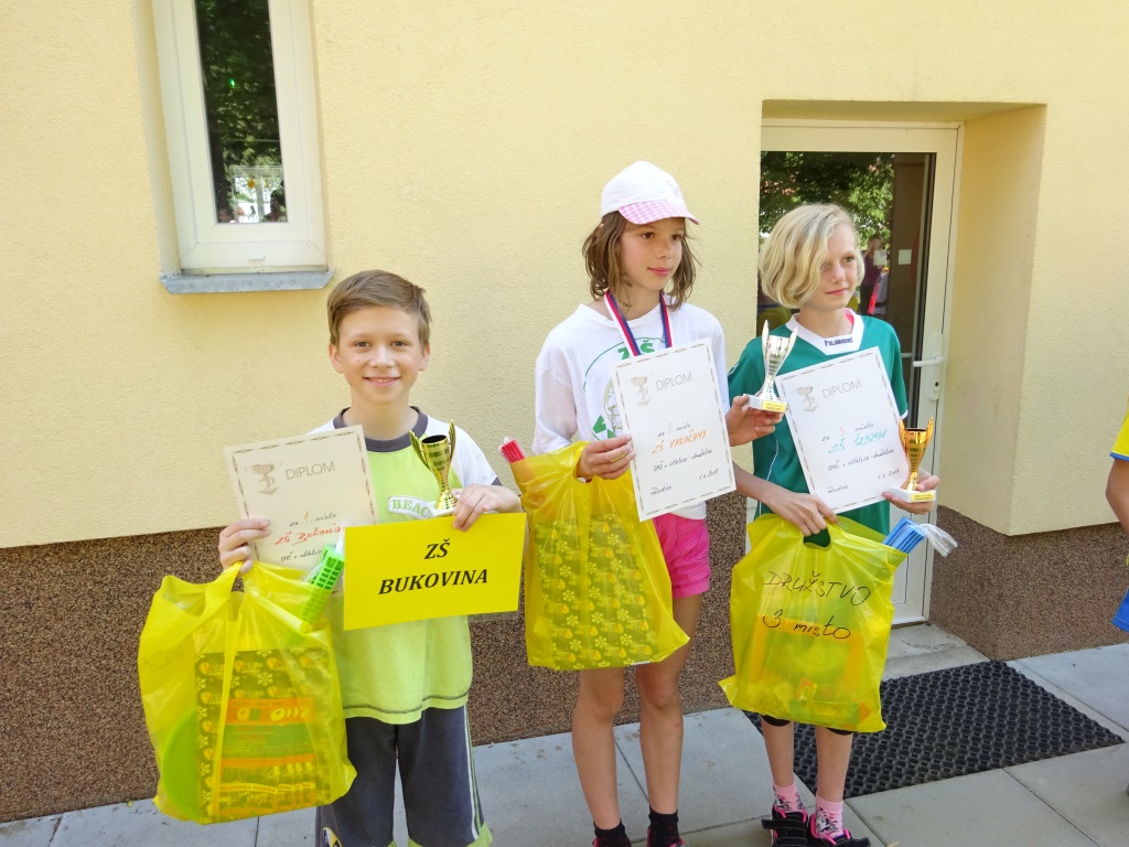Foto R. Ilkaničová 2. 6. 2017 Celkové výsledky závodů: Vysledky OMŠ 2017 (1).doc Atletické závody Rudice 2017 Ve čtvrtek 1. 6. 2017 jsme se ve složení Bára Turčínková, Lukáš Bayer, Vojtěch Tesař, Jakub Hloušek, Dominik Malík, Alexander Kupčík a p. učitelka Ilkaničová vypravili do Rudice na atletické závody. Soutěžilo se v družstvech 1. - 5. ročník ZŠ v trojboji a to ve skoku z místa, běhu na 50metrů a hodu kriketovým míčkem. Dále se vyhodnocovali nejlepší sportovci jednotlivých disciplín a na závěr se běžel dálkový běh. V jednotlivcích se na 2. místě v hodu kriketovým míčkem skvělým hodem 37m umístil Alex Kupčík. Na skvělém 1. místě se umístil Vojtěch Tesař ve skoku z místa 219cm a v běhu na 50m získal také 1. místo. Vojta také získal titul nejlepšího sportovce turnaje v součtu bodů trojboje, získal celkem 70bodů. V dálkovém běhu se umístili na 4. místě Lukáš Bayer, na 7. místě Vojtěch Tesař a Jakub Hloušek doběhl se ctí v druhé polovině startujících. Bára Turčínková doběhla s dívkami na 7. místě. Ostatní se běhu nezúčastnili. Celkově se naše družstvo umístilo na 1. místě !!! Jméno běh 50m body skok body hod body trojboj Bayer 8:69 17 177 18 34,5m 20 55 Kupčík 8:00 21 201 23 37m 23 67 Malík 8:51 18 194 21 34,3m 20 59 Tesař 7:86 21 219 33 29m 16 70 Hloušek 8:74 17 167 15 34m 20 52 Turčínková 8:94 18 171 18 17,5m 15 51 celkem 354bodů Výsledky družstev: 1. místo ZŠ Bukovina 354bodů 2. místo ZŠ Vysočany 335bodů 3. místo ZŠ Šebrov 329bodů 4. místo ZŠ Rudice 320bodů 5. místo ZŠ Březina 319bodů 6. - 7. místo ZŠ Ráječko 317bodů 6. - 7. místo ZŠ Olomučany 317bodů 8. místo Doubravice 307bodů Zpět z Rudice jsme šli pěšky do Jedovnic a tam jsme navštívili cukrárnu, kde jsme řádně oslavili naše závodění pohárem se zmrzlinou, podívali jsme se k rybníku a na průlezky a pak se odpočatí, plni zážitků vrátili domů. Ještě nás čeká velká oslava s ostatními dětmi ve škole Dětem velice gratuluji ke skvělým výkonům a doufám, že se sportu budou věnovat i nadále i po odchodu z naší školy!! R. Ilkaničová
