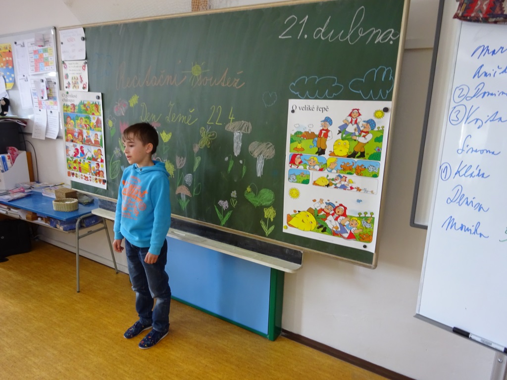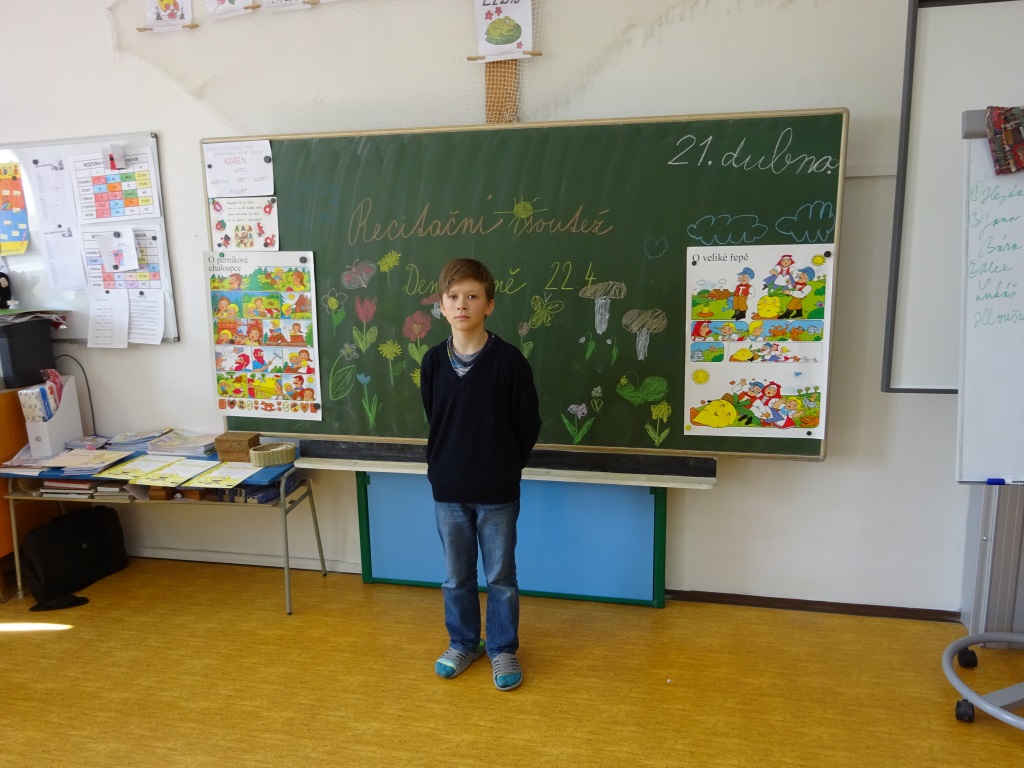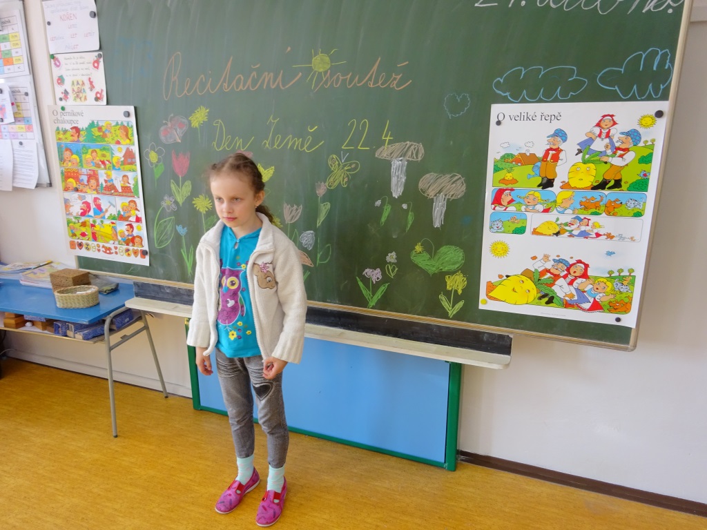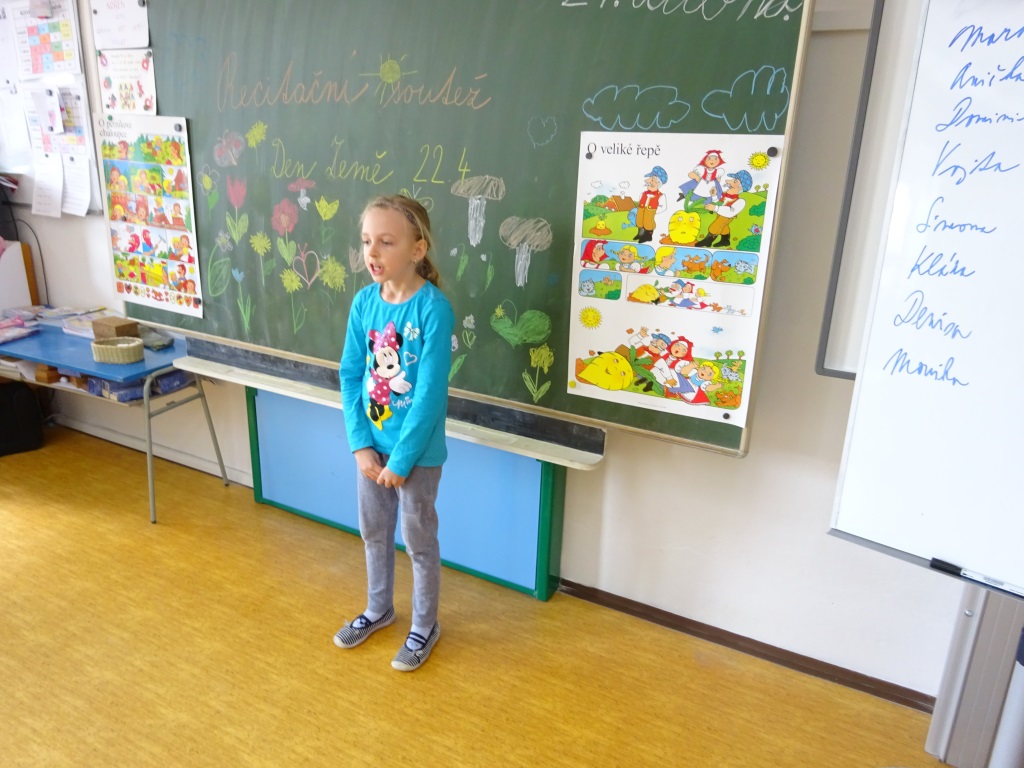 Foto 22. 4. 2017 R. Ikaničová Recitační soutěž ke Dni Země 21. 4. 2017 Výsledky soutěže dle ročníku: 1. ročník 1. Malíková 7 bodů 2. Neupauerová 7 bodů 3. Šenk 6 bodů Růžičková 6 bodů, Možná 6 bodů, Šenkeříková 6 bodů, Marincová 5 bodů, Smílková 4 body. 2. ročník 1. Pokorný 9 bodů 2. Ferenc 8 bodů 3. Hejdová 7 bodů Raab 6 bodů, Dvořáčková 6 bodů, Zlámal 5 bodů, Šilhan 5 bodů, Hybnerová K. 5 bodů, Hybnerová M. 4 body, Tesař 3 body. 3. ročník 1. Bayerová 8 bodů 2. Benešová 7 bodů 3. Třísková 7 bodů Quitta 6 bodů, Ondráček 6 bodů, Možný 5 bodů, Růžička 4 body. 4. ročník 1. Hejda 9 bodů 2. Raab 8 bodů 3. Kotulanová 7 bodů Hloušek 6 bodů, Turčínková 6 bodů, Zloch 4 body. 5. ročník 1. Bayer 9 bodů 2. Ondráčková 9 bodů 3. Kupčík 8 bodů Tesař 8 bodů, Malík 7 bodů, Humlíčková 6 bodů, Kubica 5 bodů. Absolutním vítězem recitační soutěže se stal žák 4. ročníku Jakub Hejda. Gratuluji ke skvělým výkonům! R. Ilkaničová