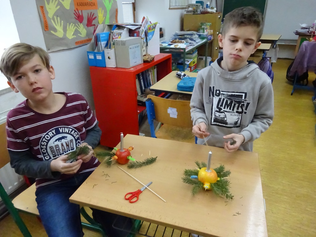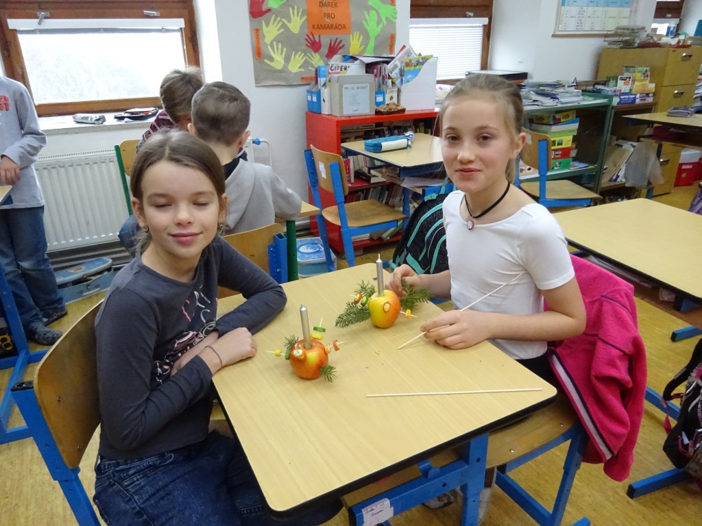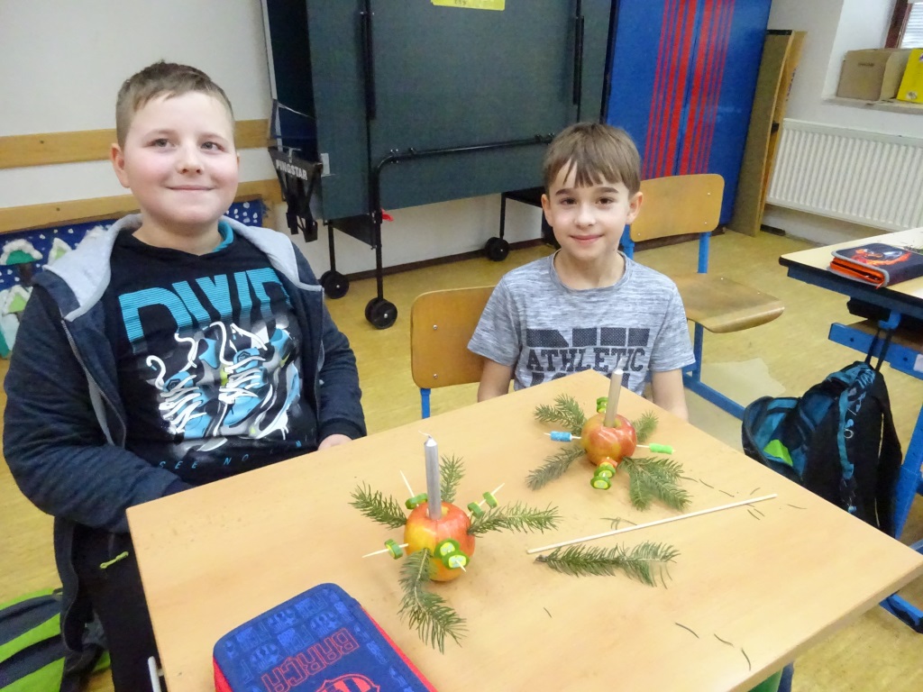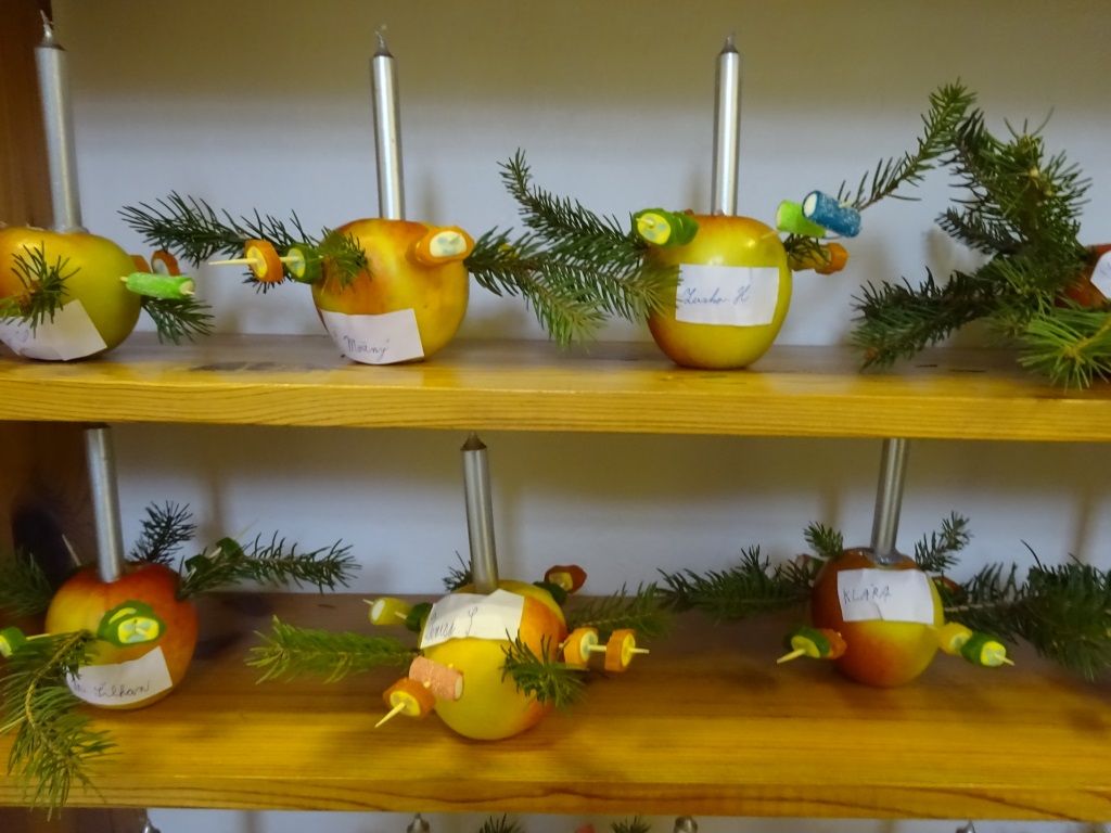 Předvánoční páteční tvoření v Pracovních činnostech - svícny z jablek a bonbonů Foto R. Ilkaničová 6. 1. 2019
