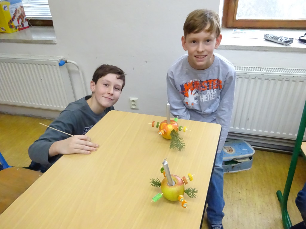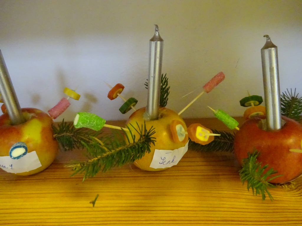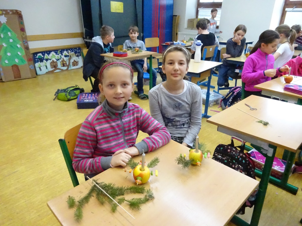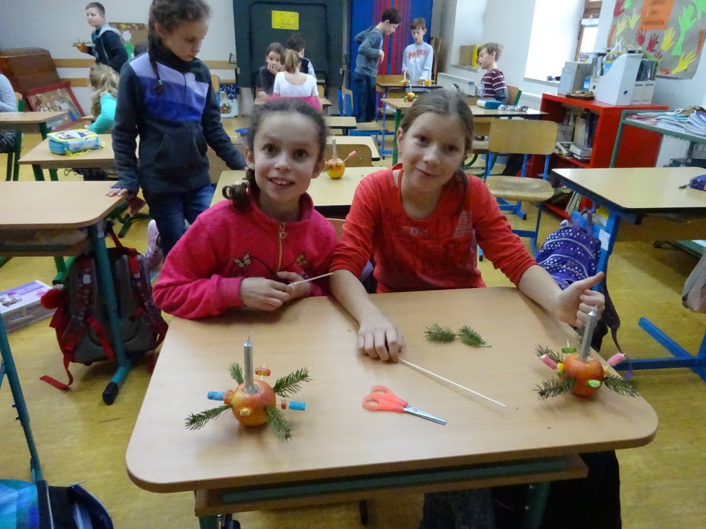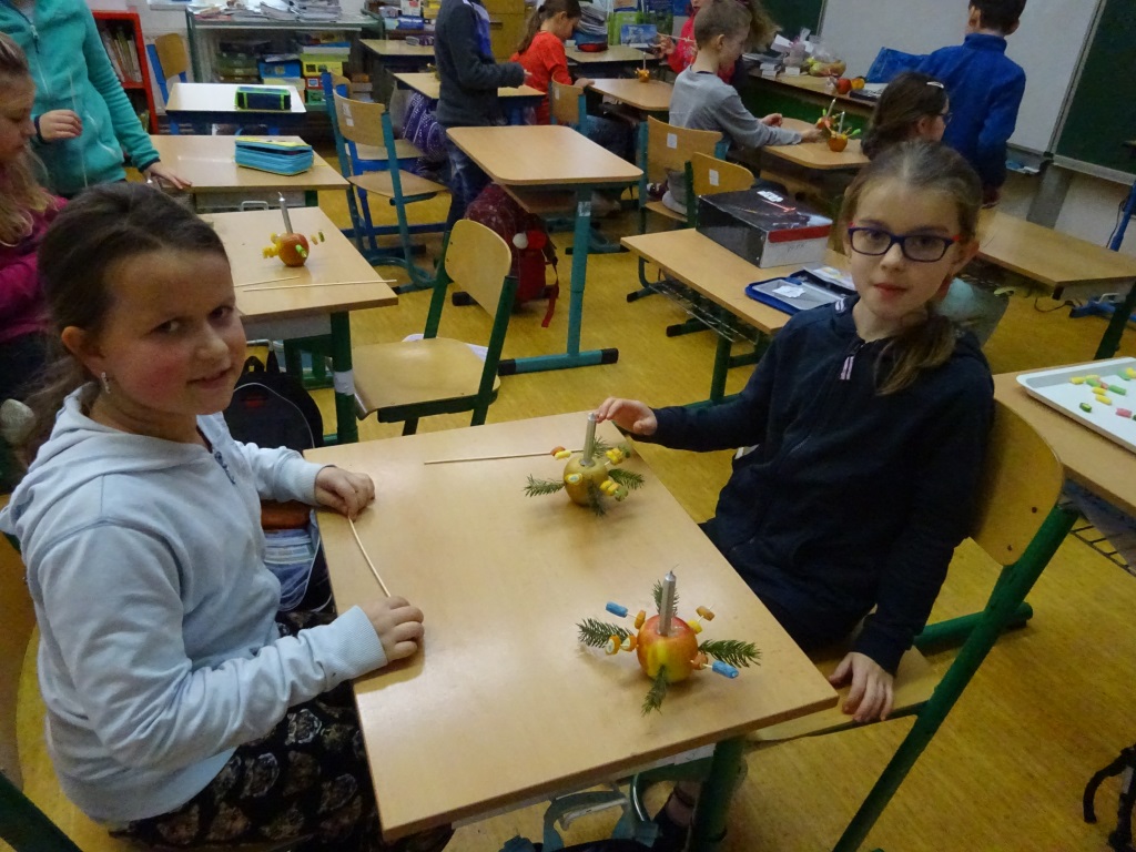 Předvánoční páteční tvoření v Pracovních činnostech - svícny z jablek a bonbonů Foto R. Ilkaničová 6. 1. 2019