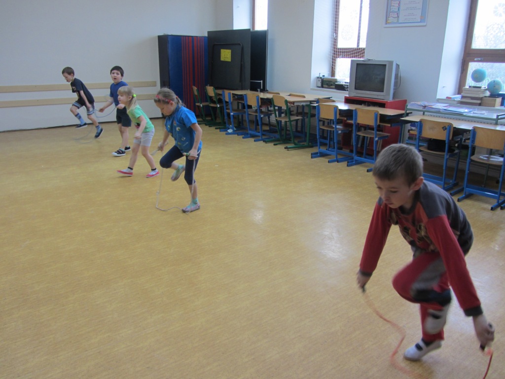 V pátek 20. 2. 2015 jsme v naší škole uspořádali soutěž ve skákání přes švihadlo. Děti se pečlivě připravovaly a skákaly přes švihadlo téměř denně ve školní družině, ve sportovním kroužku a také samozřejmě trénovaly i v hodinách tělesné výchovy. Soutěžilo se ve dvou disciplínách a to: 1. skákání přes švihadlo na čas přesně na 60 sekund jakoukoliv technikou . Děti mohly skákat celou minutu, i když chybovaly, pokračovaly dále a započítány jim byly jen správné přeskoky. 2. skákání přes švihadlo neomezené časem, jakoukoliv technikou. Započítané byly pouze správné přeskoky skákané za sebou, děti měly pouze 1 pokus a po chybě okamžitě přestaly skákat. vložila: R. Ilkaničová 1. ROČNÍK SKÁKÁNÍ 60 SEKUND, JMÉNO ŽÁKA POČET SKOKŮ UMÍSTĚNÍ HRABAL ANDREJ 62 1. MOŽNÝ ŠTĚPÁN 59 2. RŮŽIČKA VÁCLAV 43 3. TŘÍSKOVÁ KAMILA 21 4. ONDRÁČEK ŠIMON 15 5. BEMEŠOVÁ ŠTĚPÁNKA 8 6. 2. ROČNÍK SKÁKÁNÍ 60 SEKUND, JMÉNO ŽÁKA POČET SKOKŮ UMÍSTĚNÍ HEJDA JAKUB 32 1. KOTULANOVÁ JANA 19 2. 3. ROČNÍK SKÁKÁNÍ 60 SEKUND POČET SKOKŮ UMÍSTĚNÍ BAYER LUKÁŠ 103 1. TESAŘ VOJTĚCH 67 2. ONDRÁČKOVÁ KLÁRA 35 3. KUBICA MARIAN 33 4. HUMLÍČKOVÁ NIKOL 19 5. 4. ROČNÍK SKÁKÁNÍ 60 SEKUND POČET SKOKŮ UMÍSTĚNÍ JANDA DANIEL 91 1. DEKANOVÁ ADÉLA 82 2. HRABALOVÁ ALEXANDRA 71 3. KOCMAN PATRIK 69 4. MOŽNÝ HYNEK 67 5. SMÍLEK DAVID 44 6. 5. ROČNÍK SKÁKÁNÍ 60 SEKUND POČET SKOKŮ UMÍSTĚNÍ BAYER FILIP 116 1. ČERMÁK ONDŘEJ 115 2. PAVEZKOVÁ AGÁTA 86 3. DOLEŽEL DAVID 77 4. SEDLÁK DAVID 66 5. ŠKAROUPKA ZDENĚK 26 6.