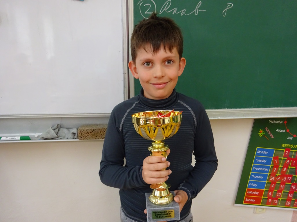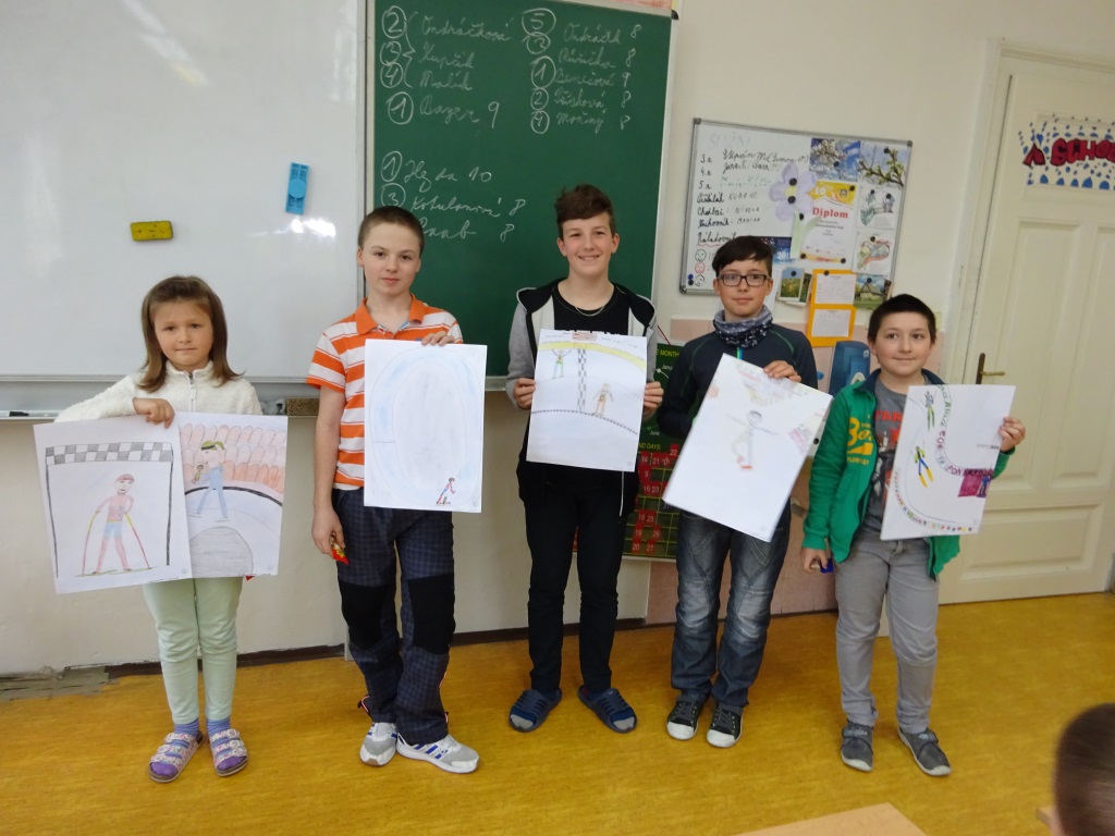 Foto vložila 22. 4. 2017 R. Ilkaničová Projekt 3. - 5. ročník Všeználek - Zimní sporty 2017 V pátek 7. 4. 2017 jsme s dětmi soutěží ve znalostech zimních sportů ukončili projekt v rámci výuky čtení a tělesné výchovy a výtvarné výchovy - Všeználek zimní sporty 2017. Celý měsíc březen a část dubna a února jsme si pravidelně povídali o zimních sportech, pouštěli jsme si různé video ukázky ze soutěží zimních sportů. Ve výtvarné výchově jsme si k těmto zajímavostem kreslili obrázky a vystavili je na školní výstavce. Dnes jsme soutěžili nejdříve mezi ročníky ve znalostním testu, kde děti mohly získat maximálně 10 bodů. Děti mile překvapily ve svých znalostech a jelikož jsme měli shodu ve výsledcích, museli jsme udělat pár slovních rozstřelů o medailová místa. Všichni medailisté se pak dostali do semifinále, kde už ústně ve znalostech soutěžili všechny ročníky proti sobě. Tři z nich, kteří získali nejdříve 2 body se dostali do finále o pohár Všeználek 2017. Do finále se dostali Lukáš Bayer/5. ročník/, Jakub Hejda/4. ročník/, a Václav Růžička/3. ročník/. V ústním finále bylo zapotřebí získat nejdříve 2 body/1 bod za správnou odpověď, -1bod za špatnou odpověď/. Nejrychleji a nejsprávněji odpovídal na záludné otázky Jakub Hejda a získal zaslouženě již po druhé pohár Všeználka 2017!!! Okruhy otázek byly vybrány z těchto sportů: krasobruslení, rychlobruslení, hokej, běh na lyžích, biatlon, alpské lyžování, akrobatické lyžování, skoky na lyžích, snowboarding a historie bruslení a lyžování. Po finále Všeználka jsme vyhodnotili výtvarnou soutěž: 1. místa: Bayer, Kupčík, Raab, Růžička 2. místa: Bayerová, Tesař, Malík, Kupčík, Růžička 3. místa: Možný, Quitta, Raab, Malík, Třísková, Kotulanová, Turčínková, Benešová, Bayerová, Tesař, Hloušek. Výherci Všeználka 2017 po ročnících 3. ročník 1. Benešová 2. Třísková, 3. Růžička 4. ročník 1. Hejda, 2. Raab, 3. Kotulanová 5. ročník 1. Bayer, 2. Ondráčková, Kupčík Finále: Lukáš Bayer, Václav Růžička, Jakub Hejda Vítězem se stal Jakub Hejda z 4. ročníku!!!! Velká gratulace Kubovi a všem velká pochvala za snahu a znalosti zimních sportů!! R. Ilkaničová